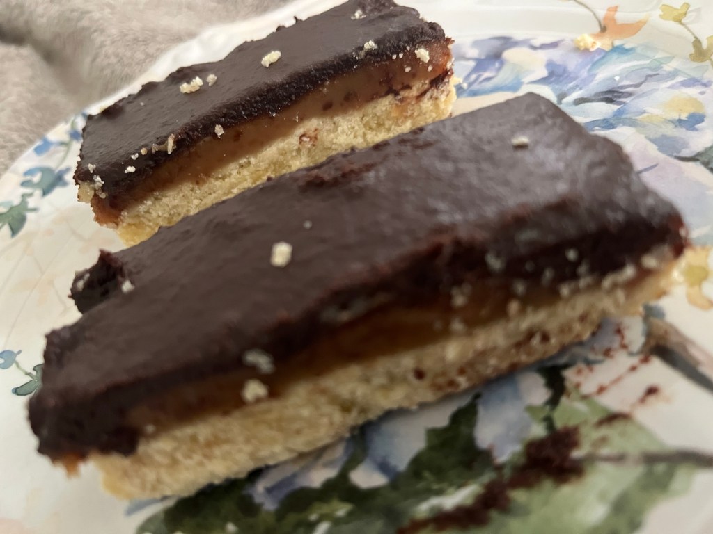 I hope you give these a try, especially if you enjoy something akin to a Twix bar. The effort of making the caramel instead of melting the store-bought prepackaged ones is sooo worth it! (Just heed my advice and do NOT attempt to lick the spoon once you’ve poured it onto the shortbread!).